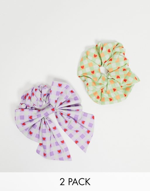 Asos Design 2er Set Elastisches Haarband Mit Schleife Mit Karo Herzmuster Asos